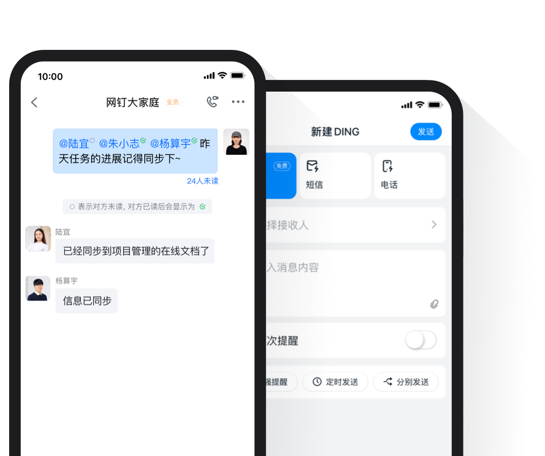 消息支持查看已讀未讀,未讀消息可轉DING通知對方,高效傳達。