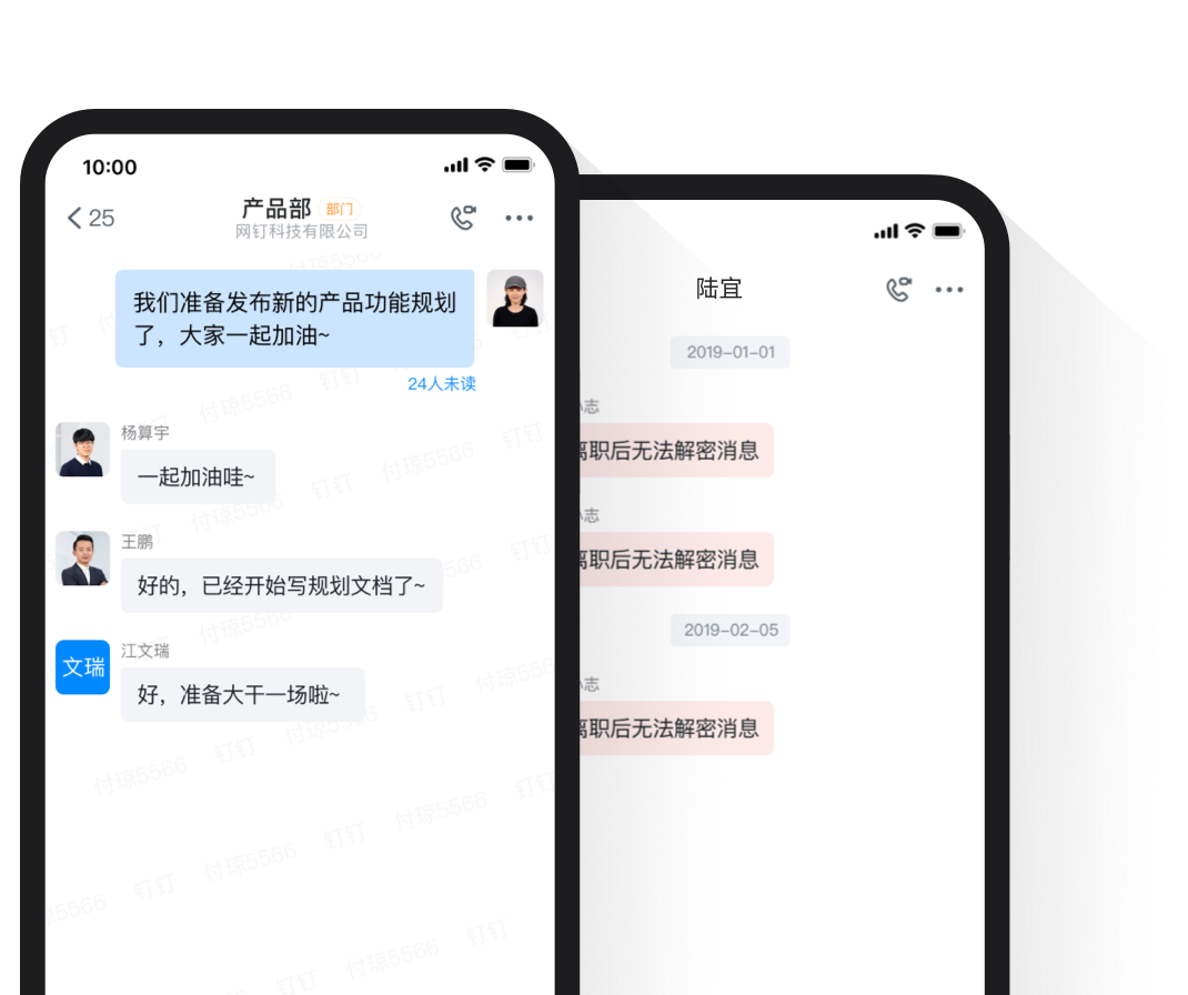 組織內實名制聊天,員工離職自動退群。聊天支持水印,防截圖泄露,保障信息安全。